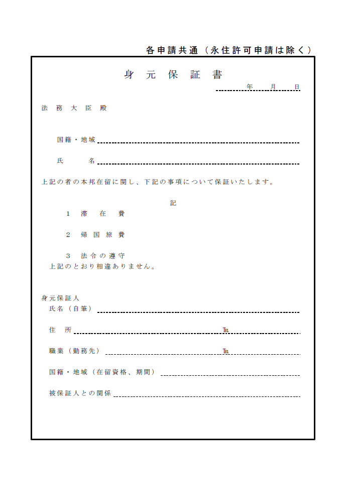 身元保証書は、そのような立場にあることを示す書類の一つと考えると理解しやすいでしょう。